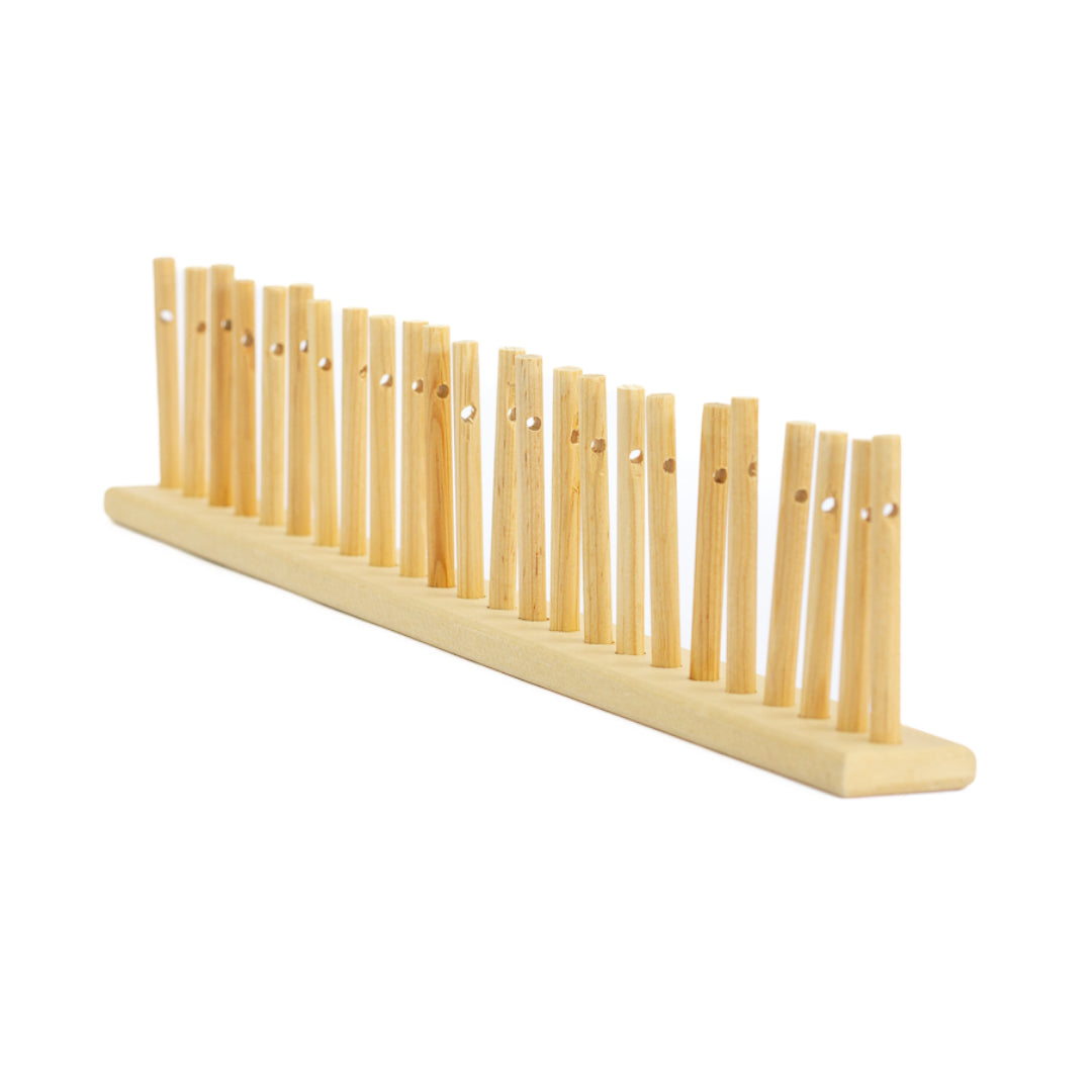 Fabricado con bambú de alta calidad, este telar es ligero y resistente. Las clavijas están espaciadas uniformemente para facilitar el tejido de diferentes tipos de hilos. Ideal para crear proyectos de tejido plano como bufandas, cinturones y tapetes.